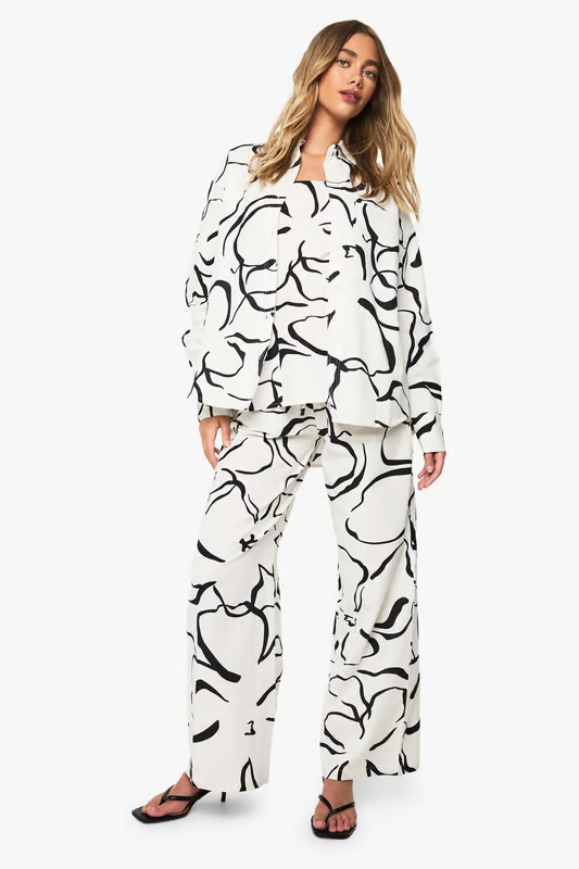 Make a statement with this eye-catching Abstract Floral Linen Look Oversized Shirt from Boohoo. The crinkle cotton fabric creates a linen-like appearance whilst maintaining breathability and comfort for all-day wear. The boxy silhouette is bang on trend this season, offering a relaxed yet fashion-forward look that’s perfect for casual outings. Style unbuttoned over a simple vest top with wide-leg trousers as seen on our model for a coordinated ensemble that radiates contemporary chic. Alternatively, knot it at the waist with your favourite denim shorts and trainers for festival vibes, or throw over a swimsuit as a stylish beach cover-up. This versatile shirt transitions seamlessly from daytime coffee dates to casual family gatherings, making it an essential addition to your wardrobe. The striking pattern ensures you’ll stand out whilst maintaining that effortless cool-girl aesthetic that Boohoo is known for.