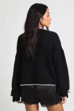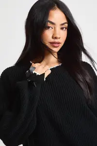 This charming knitted jumper combines comfort with playful details that make it a standout piece for your casual wardrobe. The bow cuff detailing adds a delicate feminine touch to the chunky knit, while the contrast trim along the neckline and hem creates dimension and visual interest. Style it as seen with satin shorts for a textural contrast that works brilliantly for coffee dates or casual gatherings with friends. For everyday wear, pair with your favourite denim jeans and trainers for an effortlessly cool look. When temperatures drop, layer over a collared shirt for a preppy twist or under a leather jacket for an edgier ensemble. This Boohoo jumper transitions seamlessly from daytime errands to evening lounging, making it a versatile addition to your collection that you’ll reach for time and again.