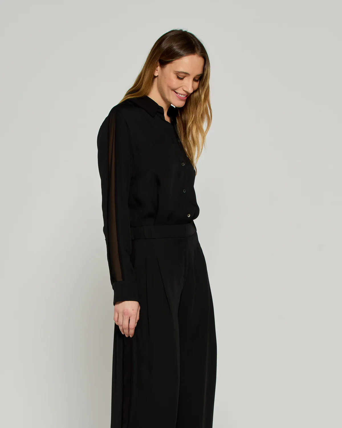 Our Classic Shirt offers a flawless regular cut and effortless elegance. Elevated by a delicate georgette trim along the sleeves, this timeless piece is sophistication with thoughtful details, making it an elevated wardrobe essential.