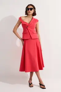 Make a statement in the office with this striking tailored midi dress from Karen Millen. The asymmetric collar adds a contemporary edge to the classic silhouette, while the belted waist creates a flattering shape. The full skirt offers graceful movement as you walk, making it ideal for both desk-to-dinner transitions. Style it with pointed court shoes and a structured tote for a polished workwear look. For after-hours events, swap your daytime accessories for statement earrings and a sleek clutch. The versatile design allows for easy customisation to suit your personal style, making it a wardrobe staple for the modern professional woman. Asymmetric collar design for a modern twist Tailored bodice with a single button closure Full skirted silhouette for a feminine flair Belted waist to accentuate your figure Midi length perfect for versatile styling Throughout October, in support of Breast Cancer Awareness Month, we’re donating 5% of sales from every piece of pink clothing to Breast Cancer Now. All year round, for every pink Forever Dress sold, we donate £5 to Breast Cancer Now.