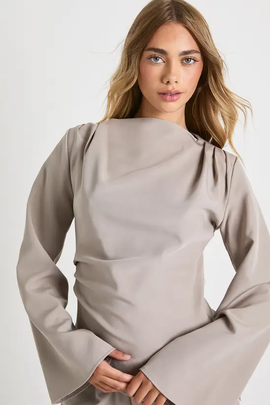 - Elegant draped asymmetric top with sophisticated cowl neckline