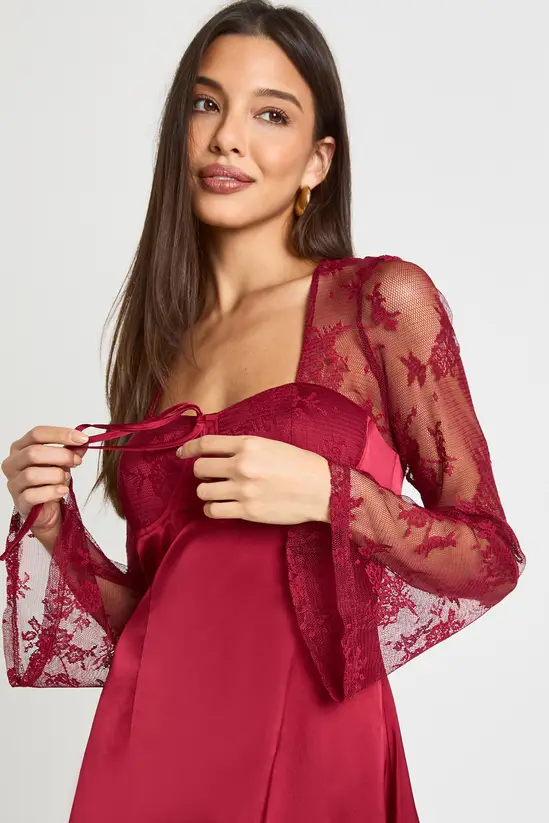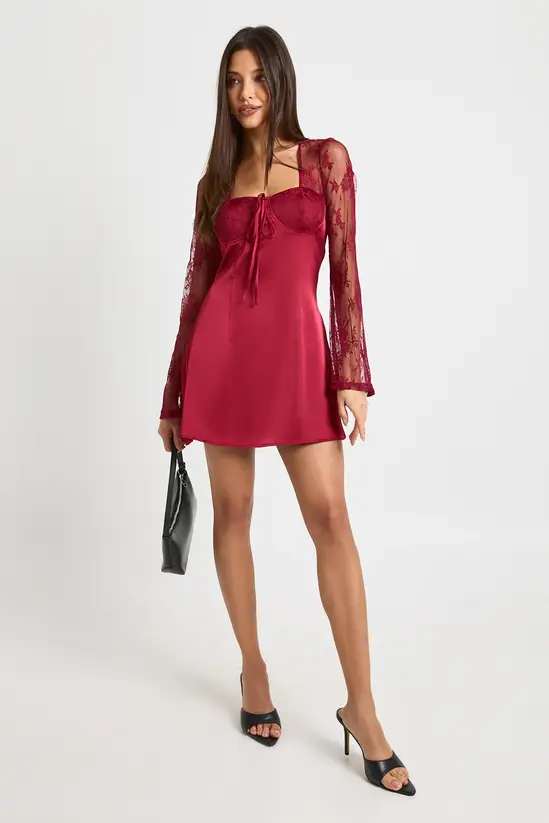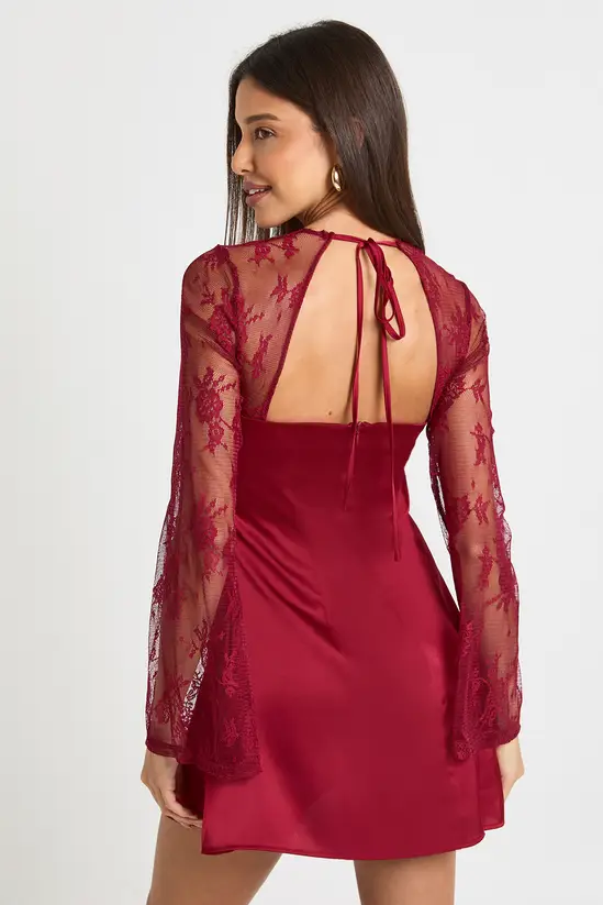 • Stunning flare sleeve mini dress featuring delicate lace detailing throughout the sleeves