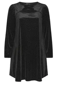 Add a classic piece to your dress collection with our new-in glitter dot dress. Made from a comfortable jersey fabric, it features a velvet bow detail, long sleeves, a cut out neckline and finishes at a mini length. Simply pair with your favourite heels for a look that is perfect for the party season ahead