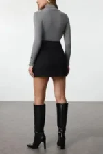 This woven mini skirt features a structured double-breasted design enhanced with decorative button detailing along the front. Crafted from a premium textured woven fabric with subtle Argyle-inspired patterning, it offers a refined yet modern look. The high-waisted silhouette flatters the figure while ensuring comfort and versatility, making it suitable for day-to-night styling. Perfect for pairing with fitted tops or knitwear, this piece blends timeless tailoring with contemporary charm, offering effortless sophistication for both smart and casual occasions.CARE INSTRUCTIONS: Check the care label for instructions. * Pre-treat stains before washing. * Machine wash on a gentle cycle with cold water. * Use a mild detergent suitable for delicate fabrics. * Avoid bleach and fabric softeners. * Air dry or use a low heat setting in the dryer. * Iron on a low-temperature setting if needed. * Store in a cool, dry place away from sunlight. COLOR DISCLAIMER: Your screen brightness, contrast, and saturation settings will affect the image viewed on your screen.