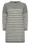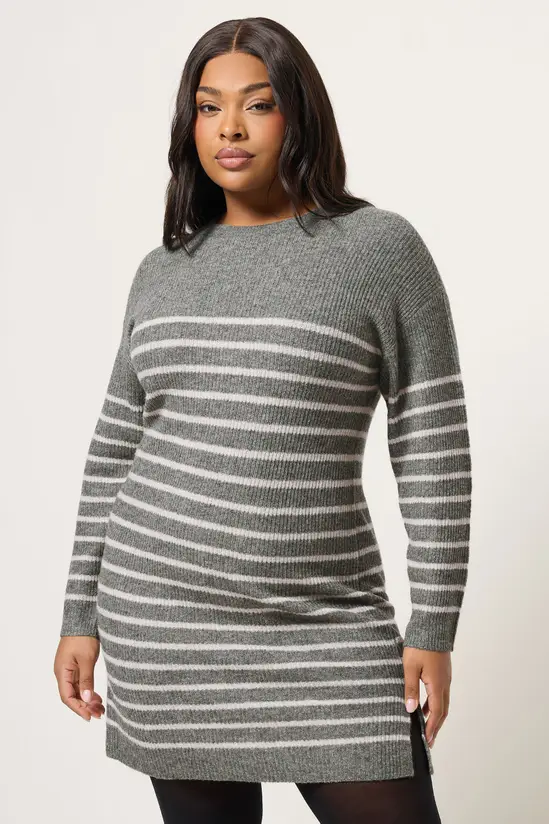 This striped knitted jumper dress is an easy addition to your seasonal wardrobe. Made from a soft knit fabric, it has long sleeves and a classic crew neckline, finished in a relaxed tunic-style shape.