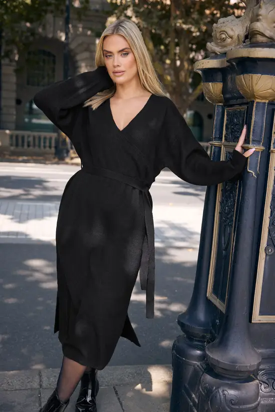 This knitted wrap dress from Yours Curve is designed to keep you comfortable while still looking stylish. Made from a soft knit fabric, it features long sleeves, a midaxi length, and a tie belt that helps create a flattering shape.