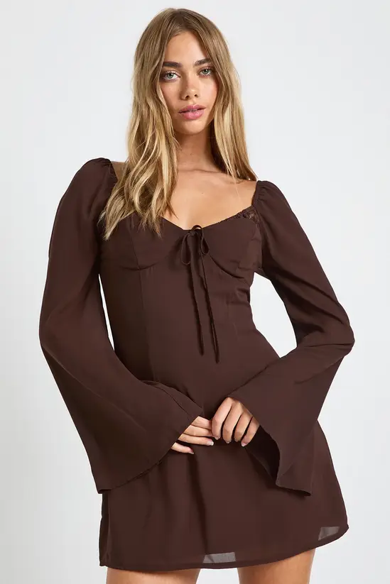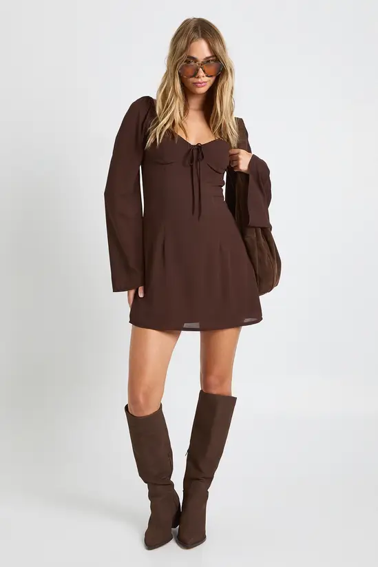 This enchanting Lace Cup Detail Milkmaid Dress captures the essence of carefree style with its romantic design elements. The delicate lace cups and sweetheart neckline create a flattering frame, while the statement flared sleeves add dramatic flair to this mini-length piece. Perfect for casual daytime events, this dress can be styled with knee-high boots as shown for an autumn-ready ensemble, or paired with flat sandals and a woven bag for summer gatherings. For cooler evenings, layer with a cropped denim jacket and accessorise with simple gold jewellery to maintain the dress’s charming aesthetic. The lightweight chiffon construction ensures comfort throughout family gatherings or brunches with friends, making this versatile piece a wardrobe essential for the fashion-forward dealioxperience girl who wants to make an impression without compromising on comfort.