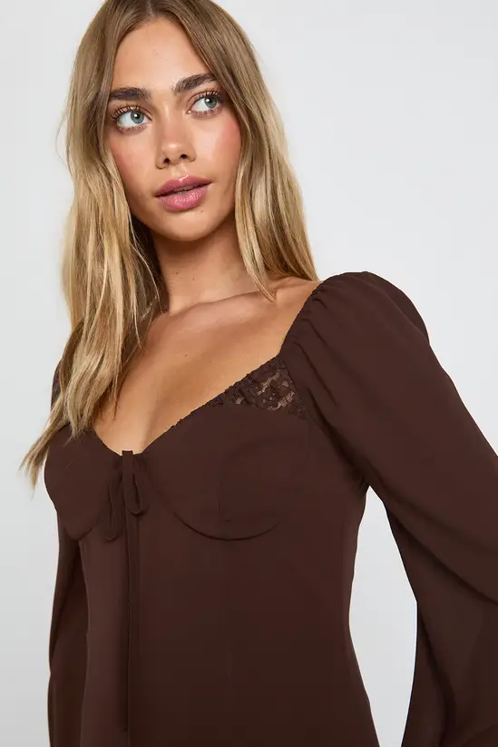 - Charming milkmaid-inspired dress with delicate lace cup detailing for a feminine touch