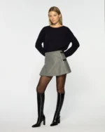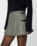 Our Wool Mini Kilt is designed and developed in a traditional Kilt style with buckle fastenings and pressed knife pleats, a nod to Serena’s family’s Scottish heritage. It is made with a premium boiled wool adding depth and warmth, in a stylish mini length.