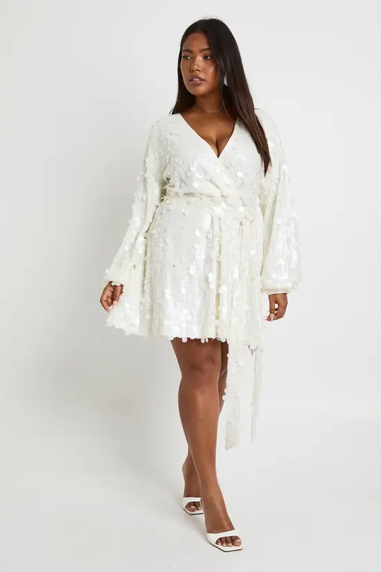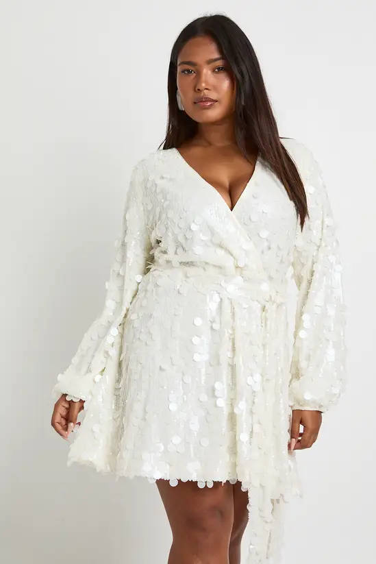 Make a statement at your next special occasion with this show-stopping Plus Disc Sequin Skater Dress from dealioxperience. The all-over sequin embellishment catches and reflects light with every movement, ensuring all eyes are on you. The wrap-style design with its flattering V-neckline and cinched waist creates a feminine silhouette that celebrates your curves, while the flared skater skirt adds playful movement. Style with strappy heels as shown for formal events like weddings or graduations, and add a clutch bag for a polished finish. For cooler evenings, layer with a tailored blazer without stealing the spotlight from this dazzling piece. The versatile design works beautifully for races, cocktail parties, or any celebration where you want to shine – literally and figuratively!