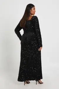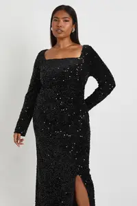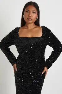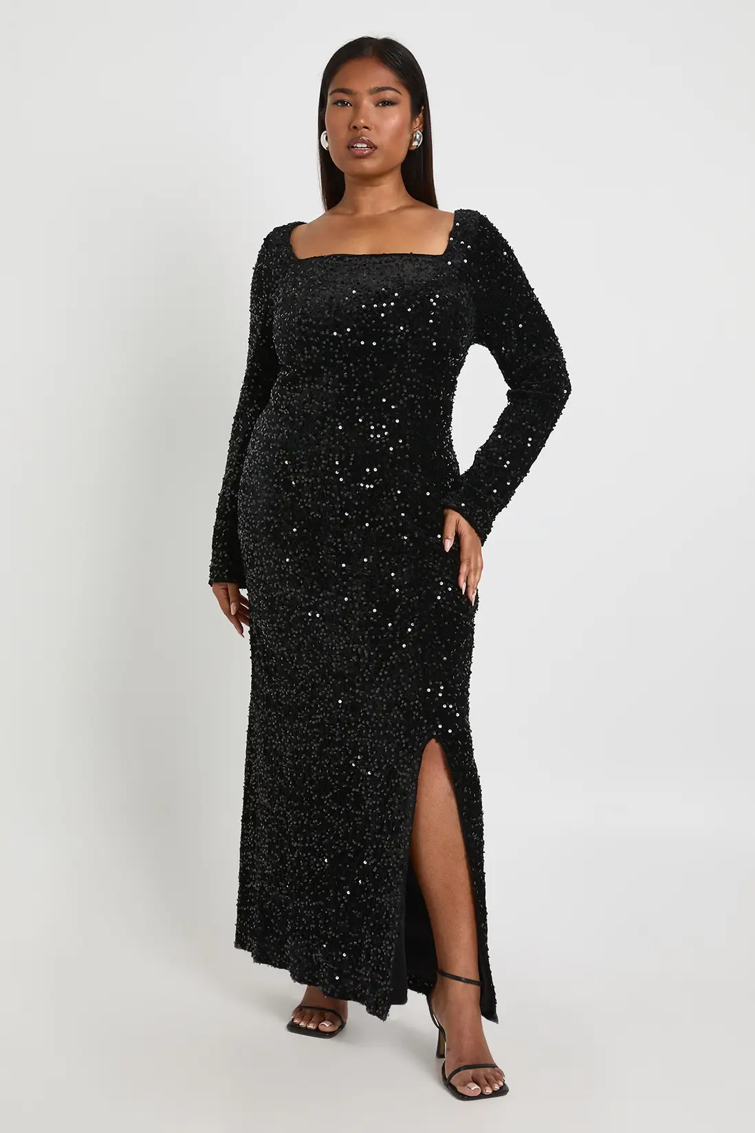 Command attention on your next night out in this show-stopping long sleeve dress. The square neckline frames your décolletage perfectly, whilst the all-over sequin detailing ensures you’ll shine from every angle. The flattering cut hugs your curves in all the right places, with a daring side slit adding a touch of allure and allowing for effortless movement on the dance floor. Style with strappy heels and statement earrings as shown for a complete look that’s ready for cocktails, club nights or special celebrations. This Boohoo dress transitions seamlessly from evening drinks to late-night dancing, making it a versatile addition to your going-out wardrobe. For cooler evenings, layer with a tailored blazer that can be removed once the party heats up.