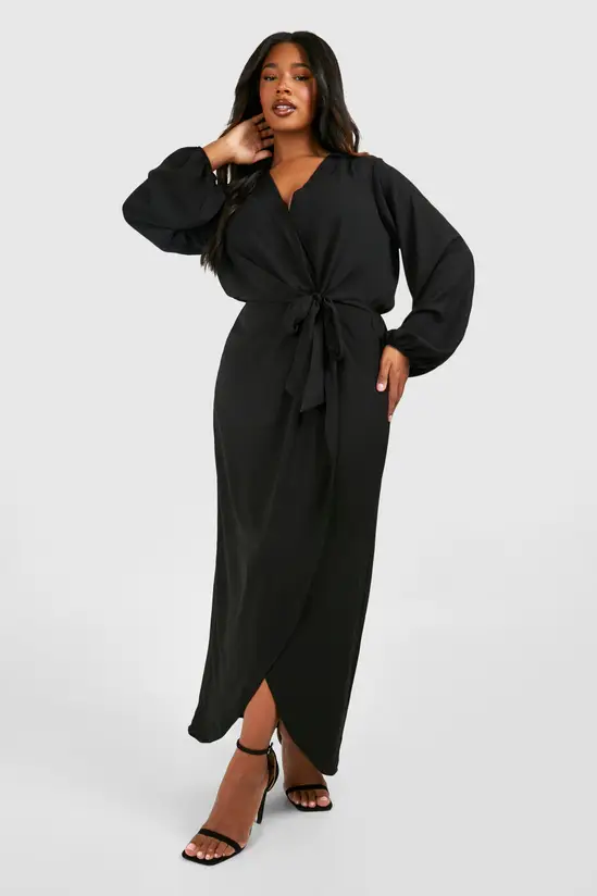 Make a statement in this striking maxi dress that effortlessly transitions from day to night. The textured satin fabric adds a touch of luxury, while the wrap-style design creates a flattering silhouette for all body types. The V-neckline draws attention to your décolletage, and the long balloon sleeves add a dramatic flair. Cinch in your waist with the adjustable tie detail, creating a personalized fit that accentuates your curves. The side slit not only adds a hint of allure but also ensures ease of movement throughout your day or evening. Pair with strappy heels and statement earrings for a glamorous dinner date, or dress it down with flat sandals and a denim jacket for a chic daytime look. This versatile piece is perfect for those who want to make an impression, whether at the office or at a special event.