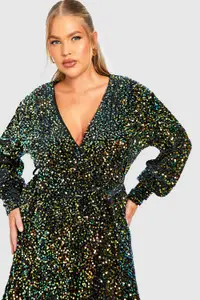 Plus Velvet Sequin Wrap Dress