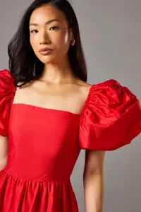 • Voluminous puff sleeves exude elegance and romance
