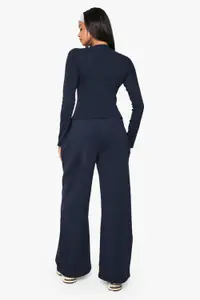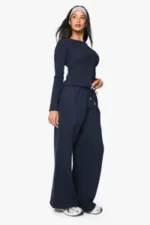 This Boohoo ribbed tracksuit combines comfort with contemporary style for the fashion-forward woman. The button-through top features a flattering cropped length that pairs perfectly with the wide-leg trousers, creating a balanced silhouette that works for various body types. Style with trainers and a crossbody bag for daytime errands, or dress it up with chunky jewellery and platform trainers for casual meet-ups with friends. The coordinated set takes the guesswork out of styling whilst offering maximum versatility-wear together for a put-together look or separately to maximise your wardrobe options. Perfect for family gatherings, weekend brunches, or those days when you want to feel comfortable without compromising on style. The ribbed texture adds visual interest to this casual essential that will quickly become your go-to for relaxed yet fashionable dressing.
