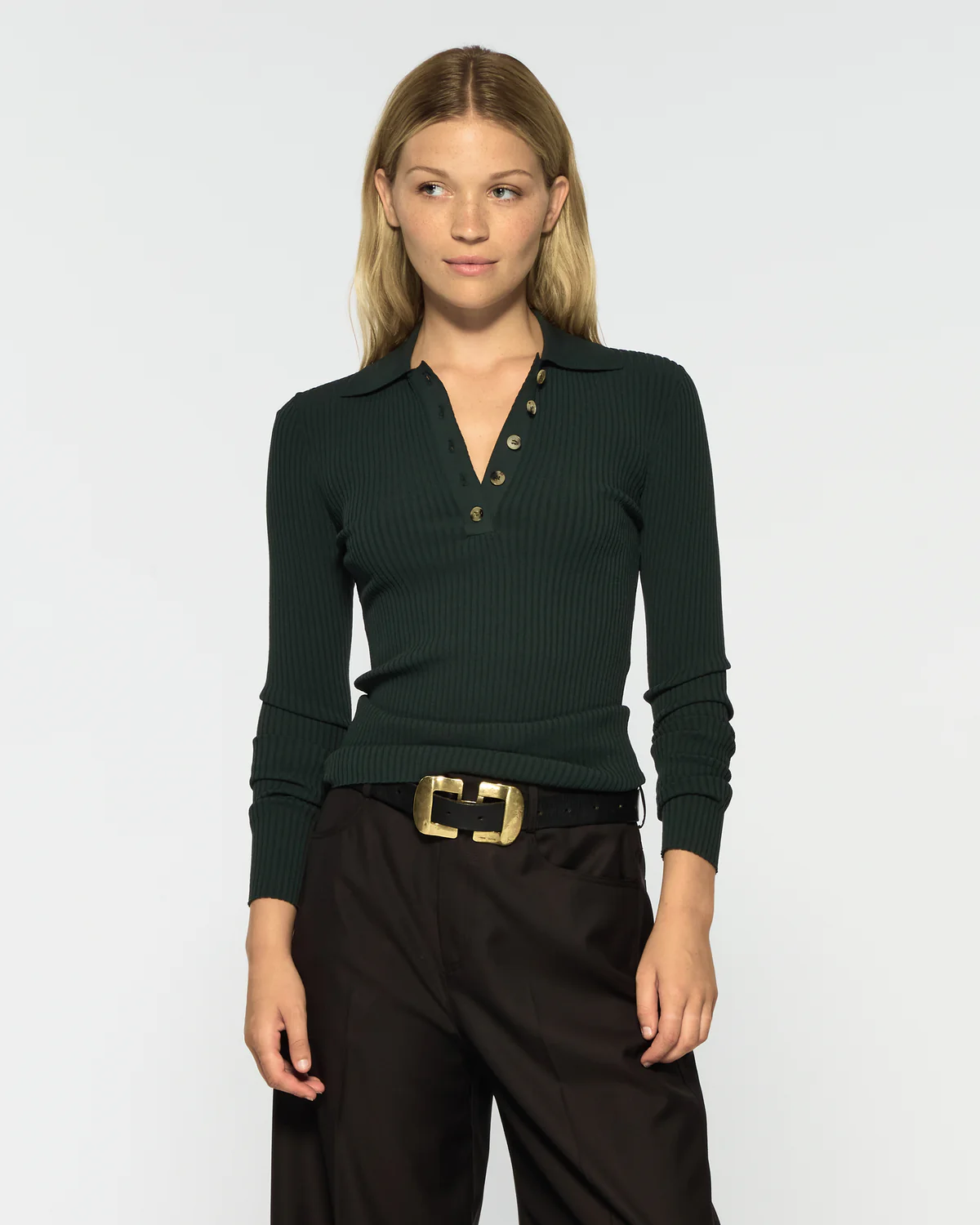 Our Ribbed Henley Top is a wardrobe essential. Our new season edition is slightly heavier, with a wider ribbed texture. Featuring the same slim silhouette and delicate collar, it is the perfect layering piece for elevated everyday wear.