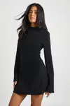 - Sophisticated mini dress featuring elegant flared sleeves for a contemporary silhouette