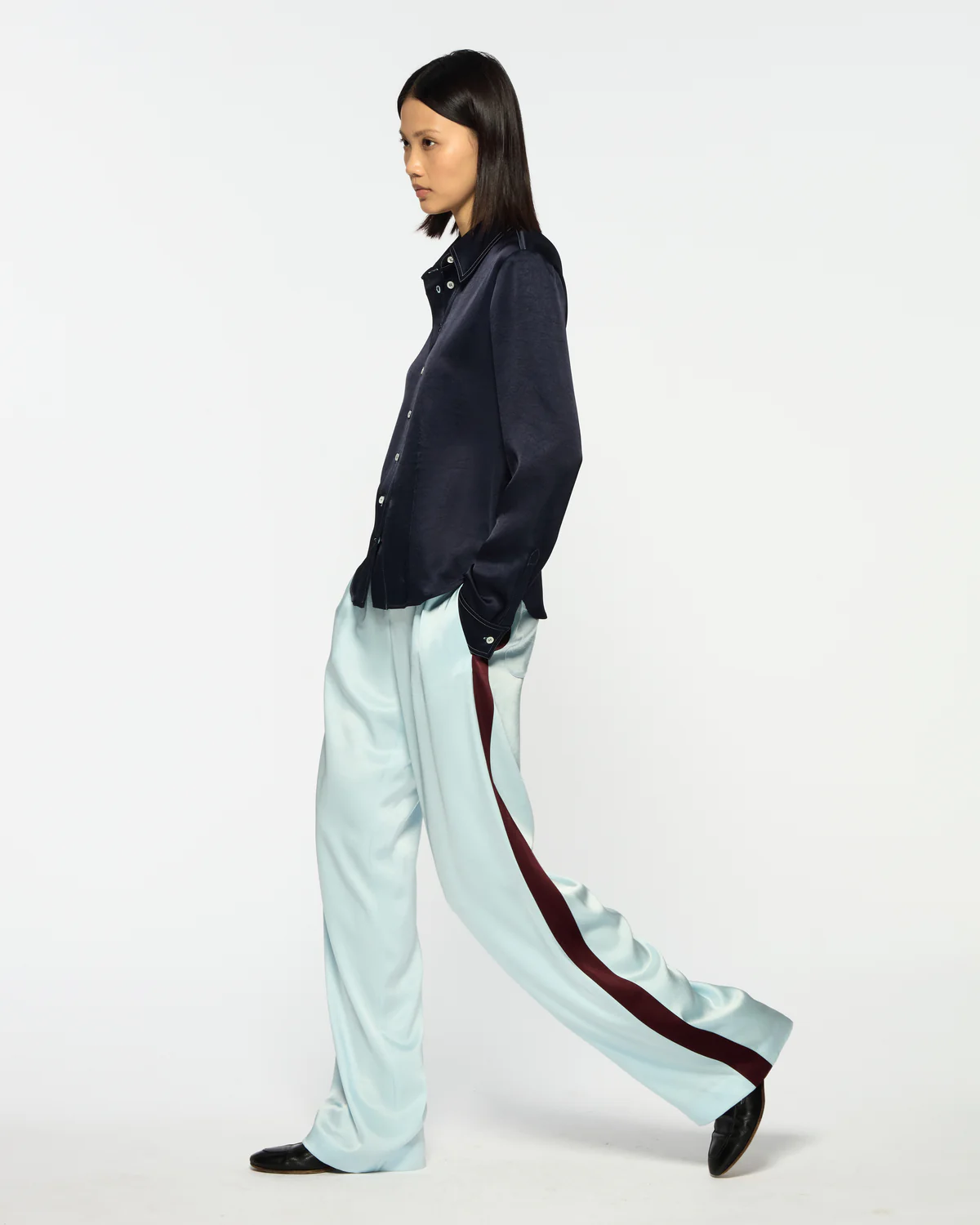 The Boyfriend Trouser, loved for its tailored front waistband and a convenient elasticated back, define relaxed sophistication. Their clean finish, accentuated by the iconic stripe down the leg, makes them a classic SB must-have.