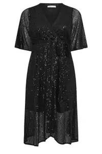 Get ready for the party season with this must-have wrap dress from Yours Curve. Made from a comfortable mesh fabric, it features sequin embellishment with short sleeves and a belted tie waist fastening. Team with heels and a clutch bag for a statement-making look.