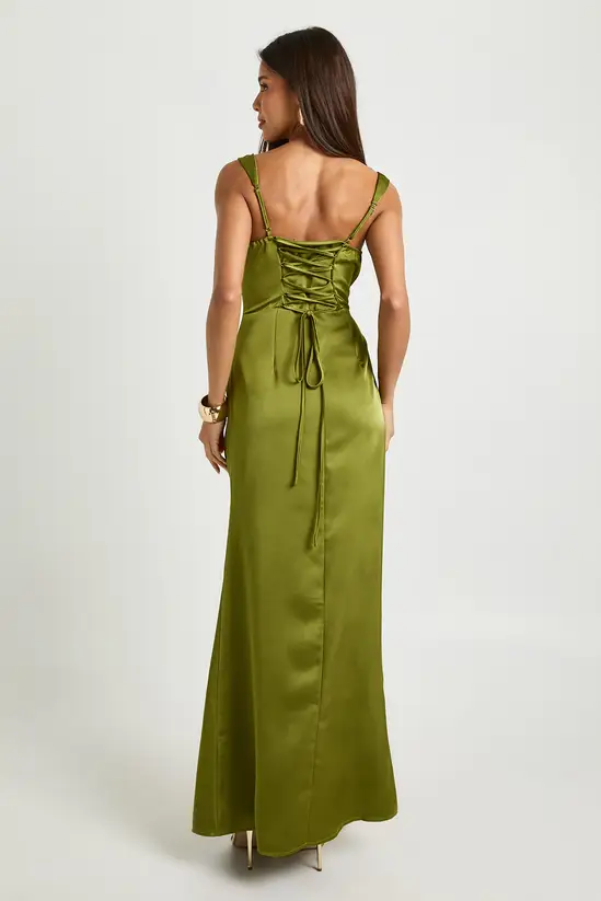 - Figure-enhancing maxi length with a sleek column silhouette