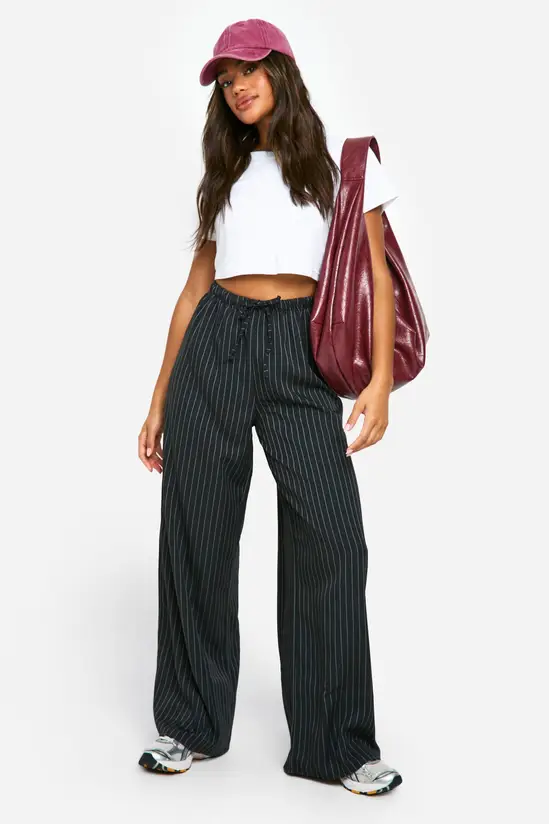 Make a bold statement with these eye-catching striped wide-leg trousers. Perfect for the fashion-forward woman who loves to stay on-trend, these trousers offer both style and comfort. The vertical stripes create a slimming effect while the high-waisted design flatters your figure. Pair them with a cropped white tee and trainers for a laid-back daytime look, or dress them up with a fitted blouse and heels for a chic evening ensemble. These trousers are ideal for casual outings, family gatherings, or even a relaxed day at the office. The wide-leg cut allows for easy movement, making them a comfortable choice for all-day wear. Embrace the versatility of these trousers and let your personal style shine through various styling options.
