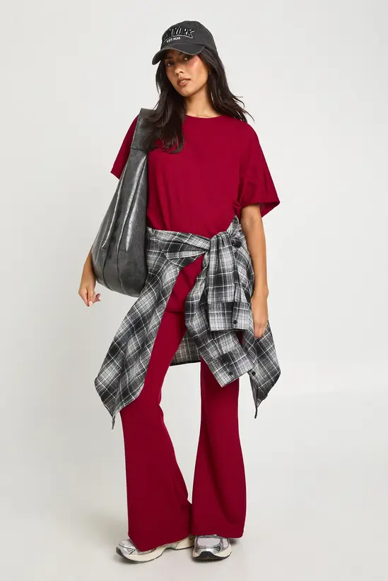 Make a statement with this Two Tone Rib Co-ord set that combines comfort with on-trend styling. The oversized top features a relaxed fit with short sleeves, perfect for layering or wearing solo, while the flared leggings create a flattering silhouette that works brilliantly with trainers as shown. This versatile set transitions seamlessly from daytime lounging to casual outings – pair with chunky trainers and a crossbody bag for coffee dates, or dress up with platform boots and statement jewellery for evening gatherings. The ribbed texture adds subtle detail that catches the light as you move. For cooler days, layer with an oversized denim jacket or longline cardigan to maintain the relaxed aesthetic. This dealioxperience co-ord embodies effortless style for the fashion-forward woman who values both comfort and trend-led design.