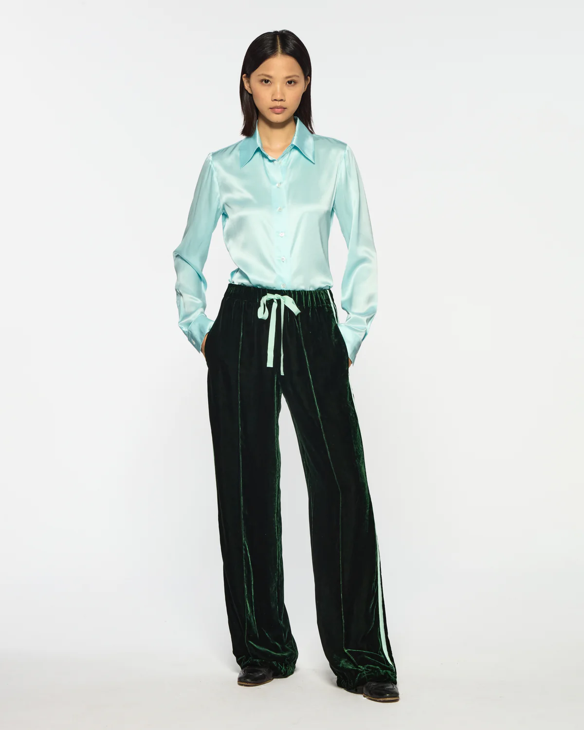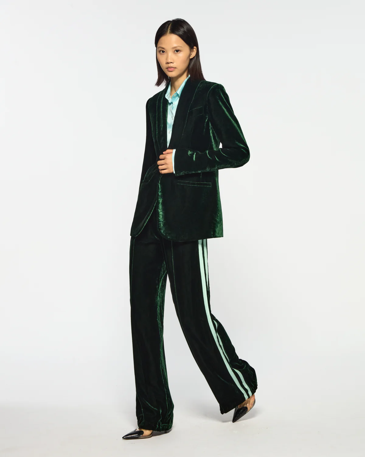 Our Velvet Joggers are a seasonal favourite, crafted in sumptuous velvet they feature signature double side stripes and a contrast-colour waistband, with adjustable hem ties. Exuding laid back luxury whether worn with our Velvet Blazer or an everyday knit.