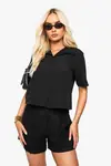 • Boxy fit short shirt with classic collar design for a contemporary silhouette